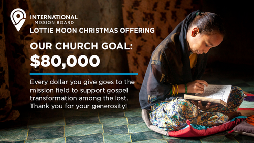 We also learned more about the Lottie Moon Offering from two of our global partners who benefit from it annually. They shared how every dollar given makes a tangible difference—supporting their daily needs and freeing them to focus fully on ministry in the places God has called them. Our church’s goal for this year’s Lottie Moon Offering is $80,000. We invite you to take a Lottie Moon envelope and prayerfully ask the Lord how He would have you give.